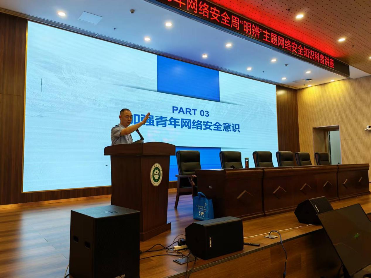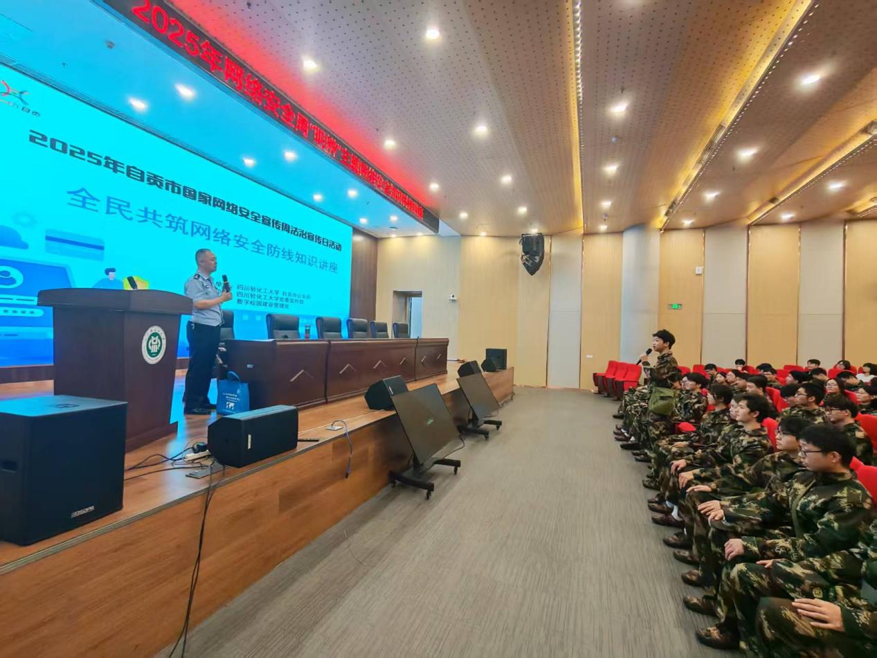 2025年9月18 日,在以“网络安全为人民,网络安全靠人民”为主题的国家网络安全宣传周期间,自贡市公安局走进四川轻化工大学,邀请市局网络安全专家龚攀教官开展“明辨” 主题网络安全科普活动,该校300余名大一新生参与其中。