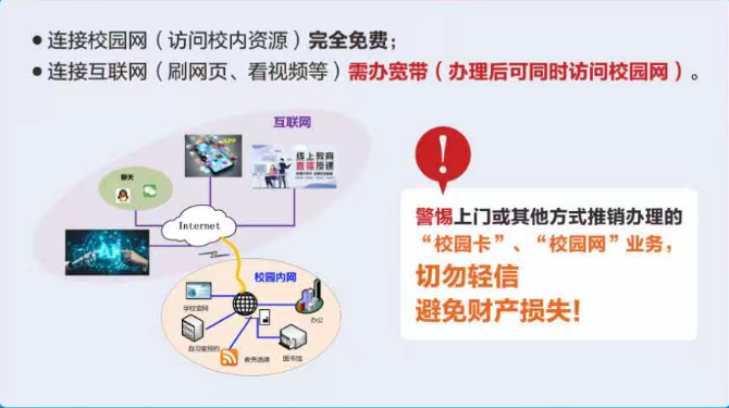 >请务必前往校内指定地点(校园网络服务中心)咨询办理宽带账号